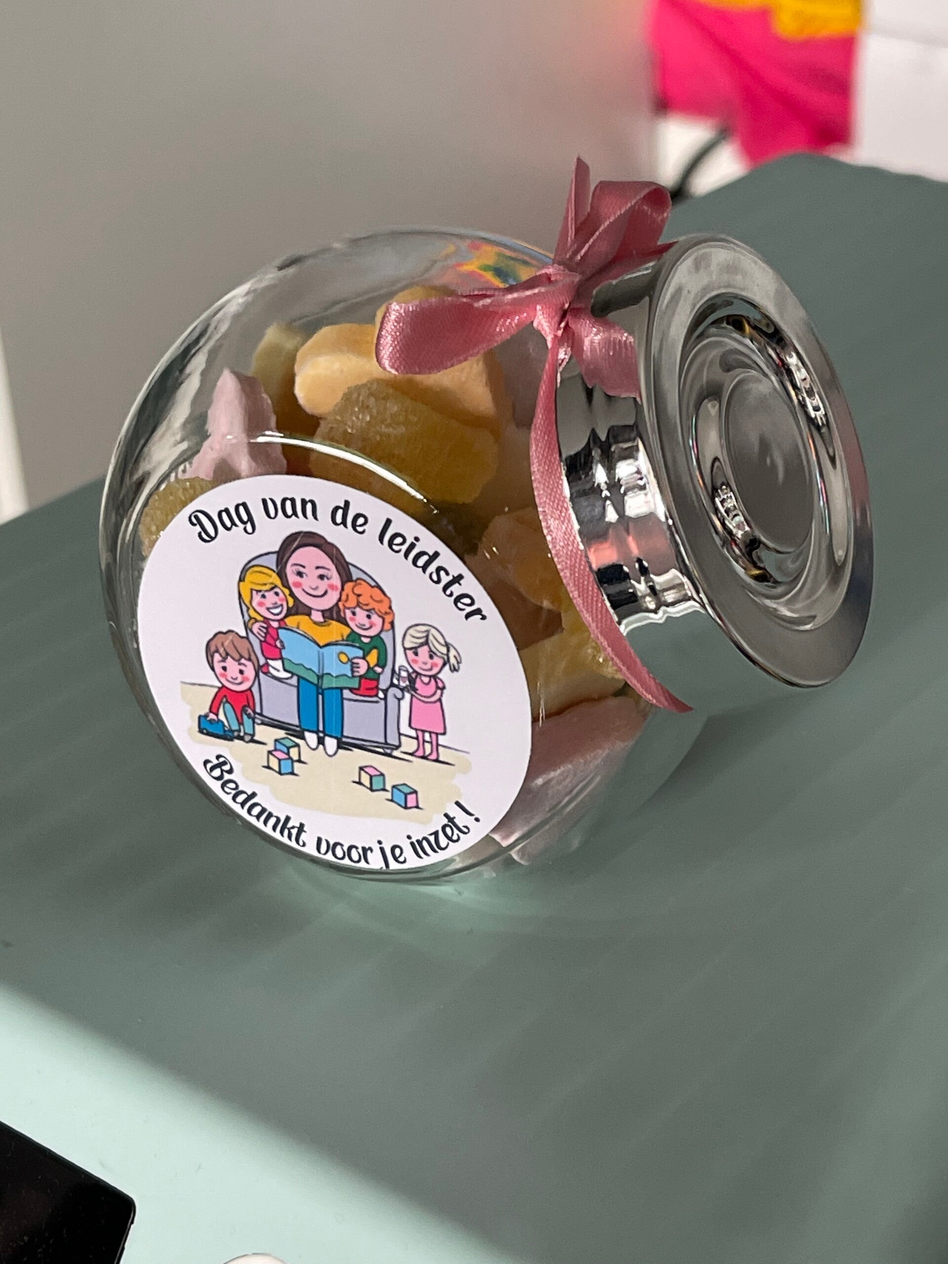 Snoeppotjes gevuld en gepersonaliseerd