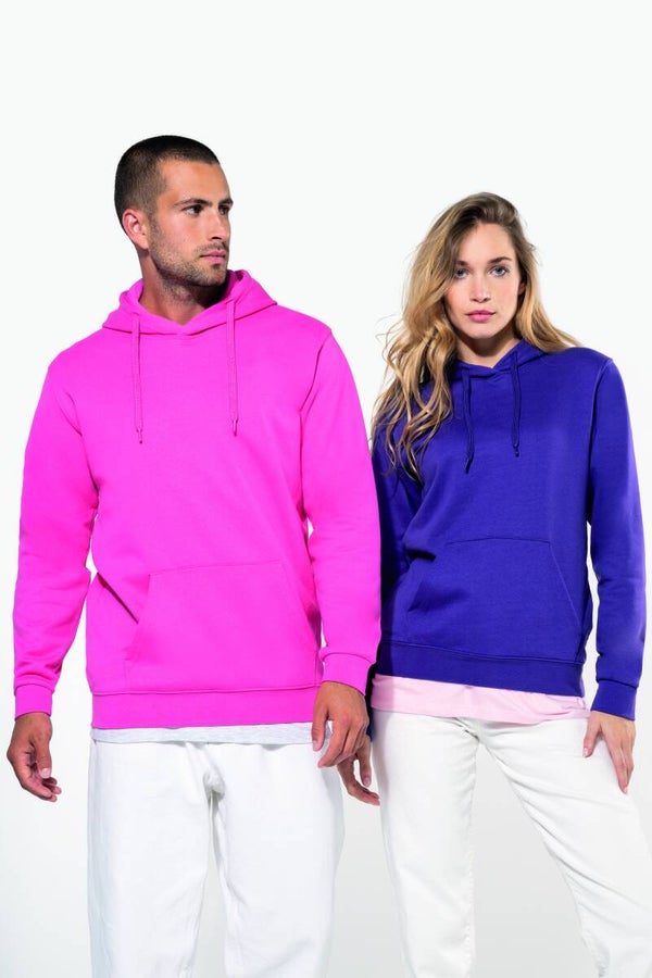 Matriaal: 80% katoen / 20% polyester (Olive & Grey camouflage 70% katoen / 30% polyester). Gekamd katoen. Geborsteld fleece aan de binnenkant. Ingezette mouwen. Gevoerde capuchon met toon op toon aanrijgkoordjes. Kangoeroezakken. Ribboord aan mouwuiteinden en aan de onderkant.